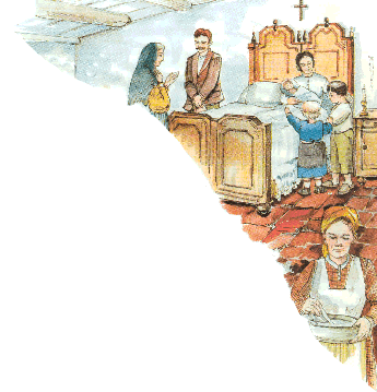 attorno a sé i bambini e racconta loro di Gesù e di Maria.